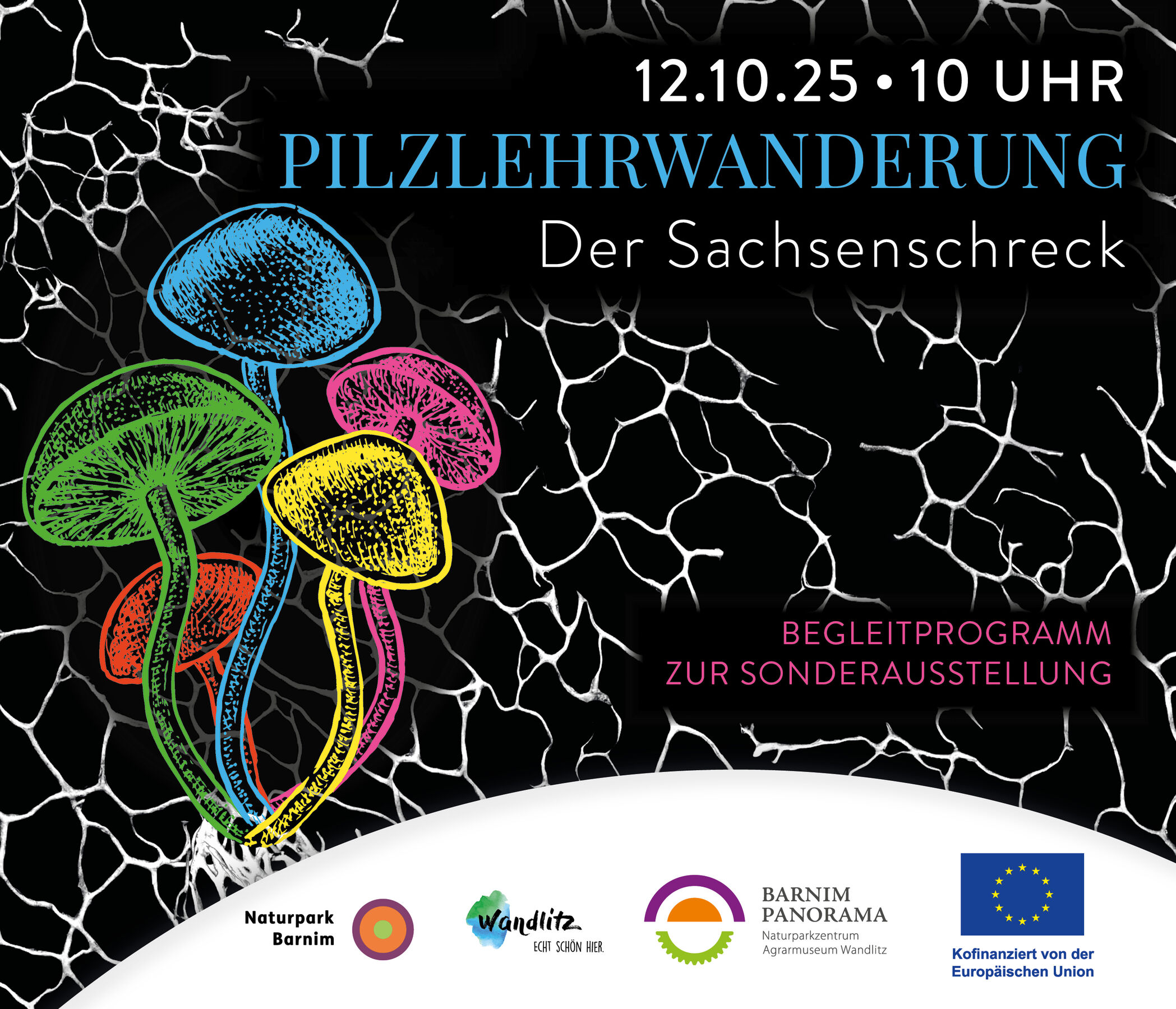 Im Rahmen der Sonderausstellung: „FASZINATION PILZE – Geheimnisvolle Alleskönner“, die vom 07.07.24 – 04.01.2026 im Barnim Panorama zu sehen ist, werden u.a. die verschiedenen Lebensräume im Naturpark Barnim mit den dort typischen Pilzfruchtkörpern verbunden. Diese Verbindung soll nun von der Darstellung im Museum in die Realität gespiegelt werden.