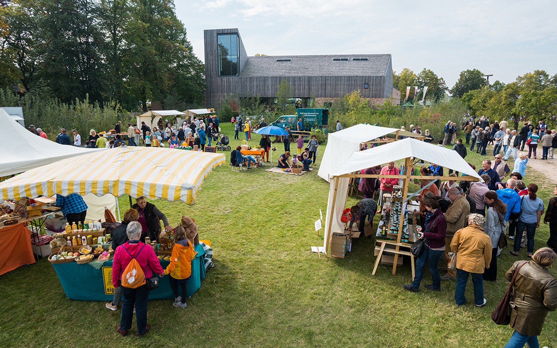 Im Außenbereich kann man im Schaugarten die Vielfalt unserer Nutzpflanzen entdecken und bekannte und weniger bekannte Arten und Sorten mit allen Sinnen erleben. Ein Entdeckerpfad mit Baumhaus, Amphibientheater und Naturbühne lädt vor allem Kinder zum Entdecken, Forschen und Staunen ein.