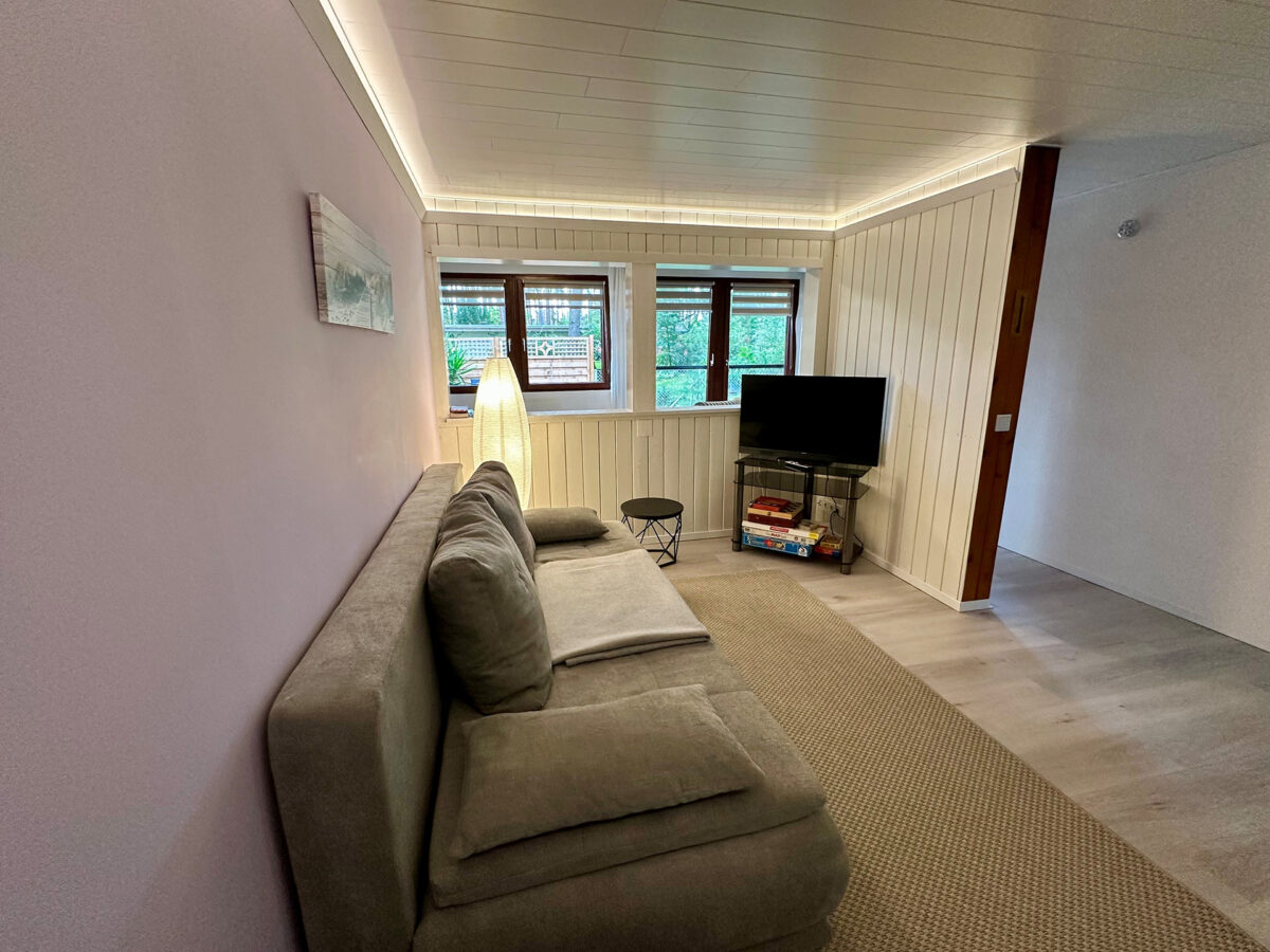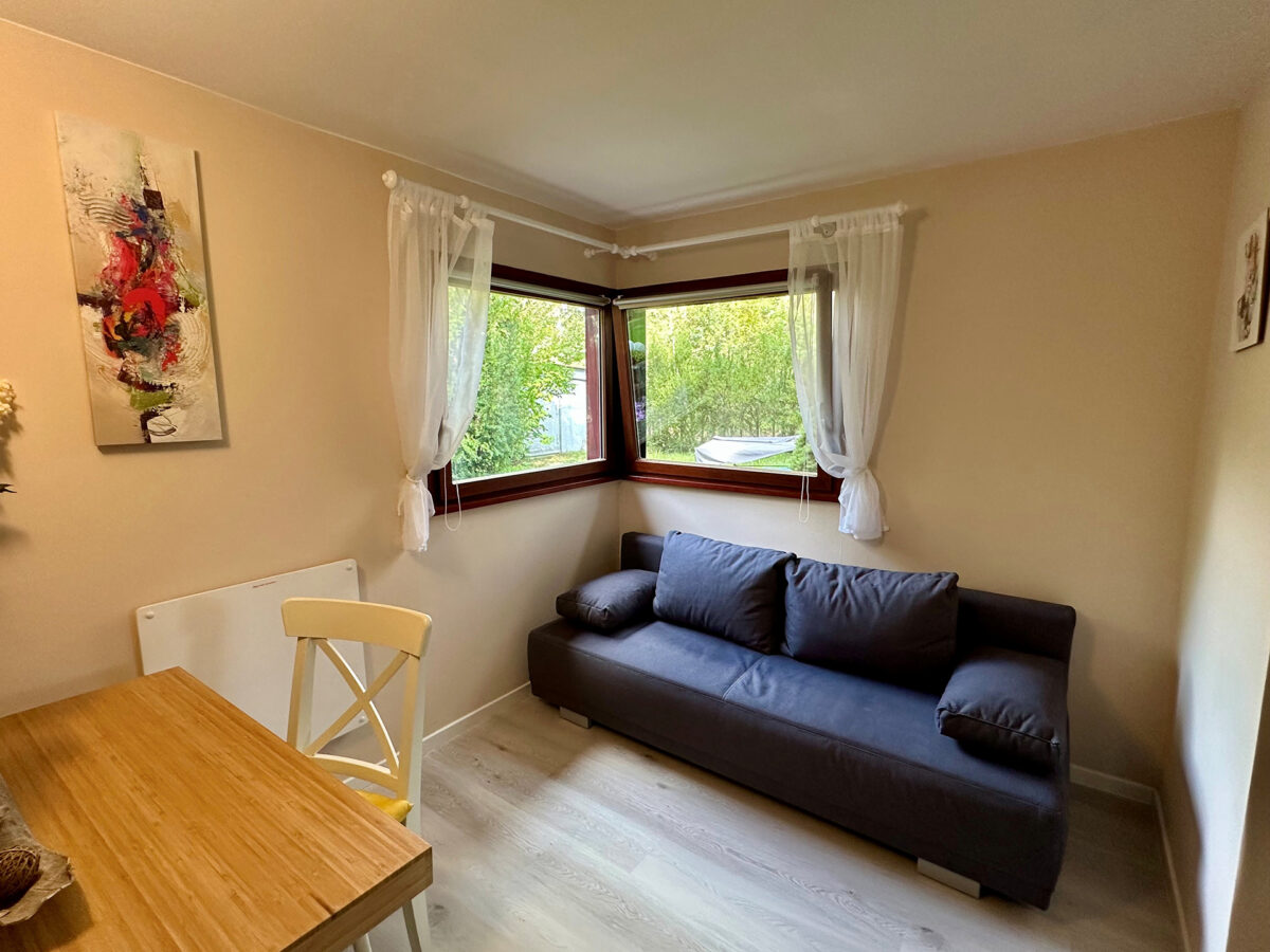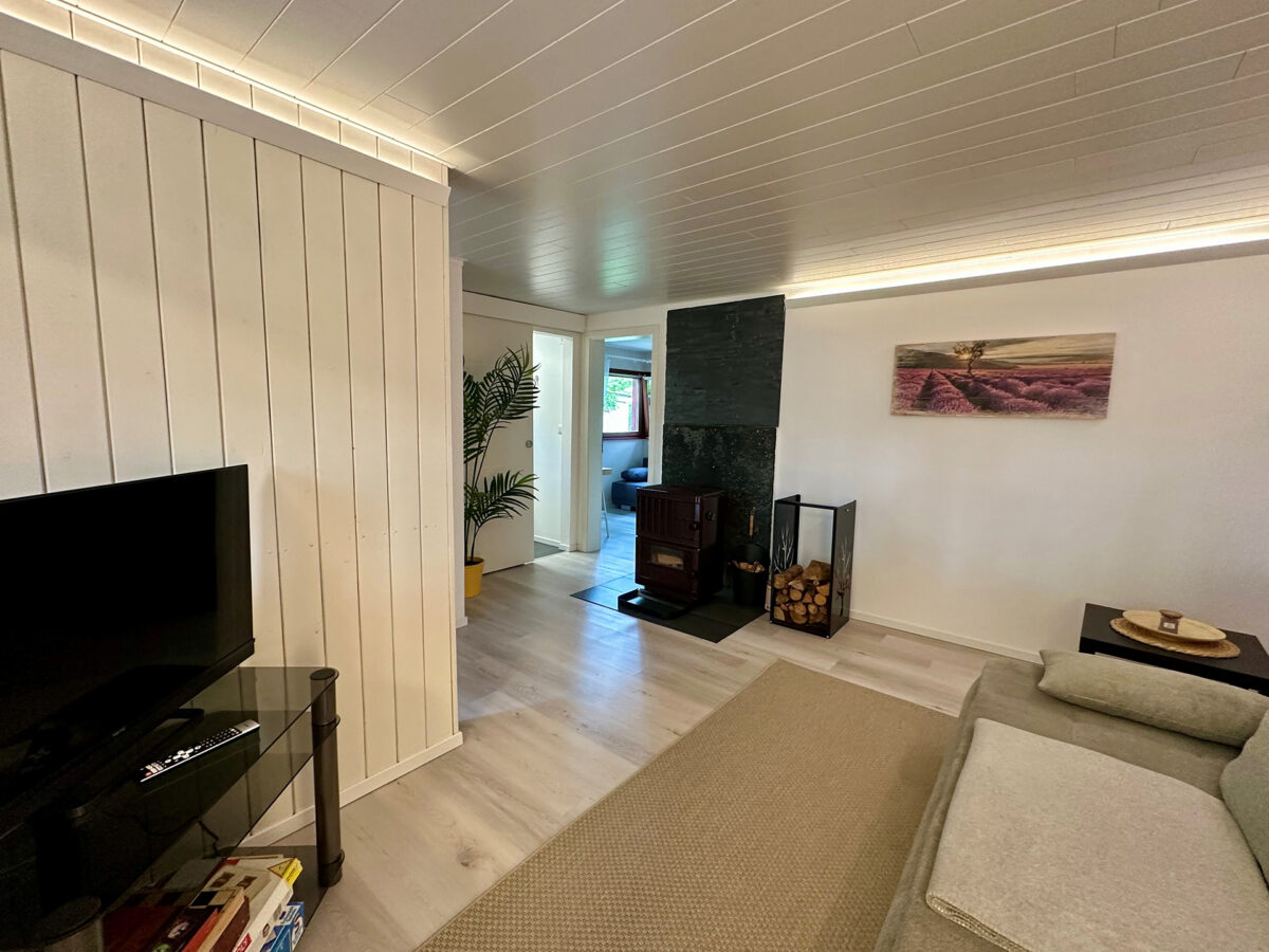 Das Ferienhaus selbst wurde in den Jahren 2020 bis 2023 umfassend saniert und neu möbliert. Es umfasst 4 Räume (2 kleine Schlafzimmer, 1 Wohnzimmer, eine Loggia mit Essplatz und Chillecke), eine voll eingerichtete Küche, ein kleines Duschbad sowie eine Toilette. Es sind 4 Schlafplätze vorhanden die sich im Hauptschlafzimmer (Boxspringdoppelbett), im 2. Schlafzimmer (Schlafsofa) und im Wohnzimmer (Schlafsofa) befinden. Zusätzlich kann auf Anfrage ein Babybett sowie ein Kinderstuhl zur Verfügung gestellt werden. An kalten Tagen besteht die Möglichkeit den Ofen anzuheizen oder die vorhandenen Infrarotheizungen zu nutzen.