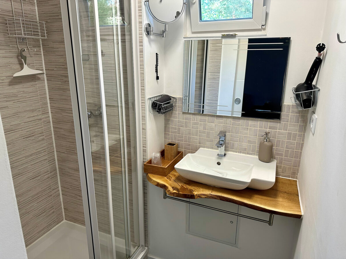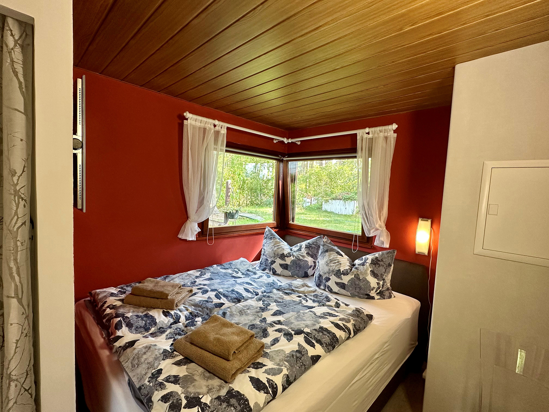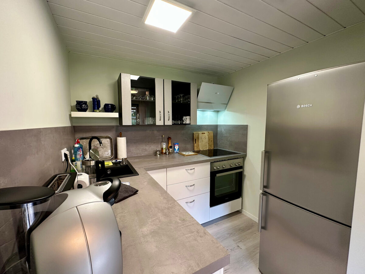 Das Ferienhaus selbst wurde in den Jahren 2020 bis 2023 umfassend saniert und neu möbliert. Es umfasst 4 Räume (2 kleine Schlafzimmer, 1 Wohnzimmer, eine Loggia mit Essplatz und Chillecke), eine voll eingerichtete Küche, ein kleines Duschbad sowie eine Toilette. Es sind 4 Schlafplätze vorhanden die sich im Hauptschlafzimmer (Boxspringdoppelbett), im 2. Schlafzimmer (Schlafsofa) und im Wohnzimmer (Schlafsofa) befinden. Zusätzlich kann auf Anfrage ein Babybett sowie ein Kinderstuhl zur Verfügung gestellt werden. An kalten Tagen besteht die Möglichkeit den Ofen anzuheizen oder die vorhandenen Infrarotheizungen zu nutzen.