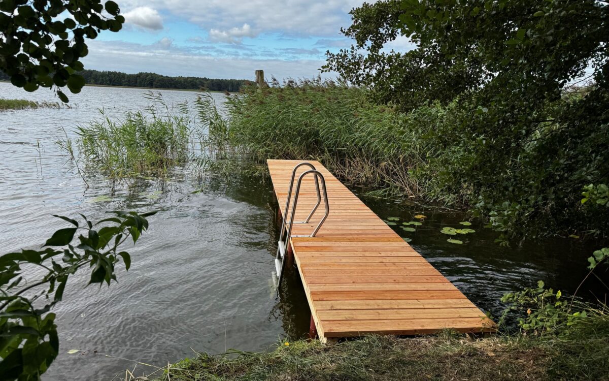 Das Areal ist an einer Seite begleitet von einem Mühlenfließ, welches am Grundstück in den Stolpsee mündet. Es stehen zwei Badestege am Stolpsee zur Verfügung.
